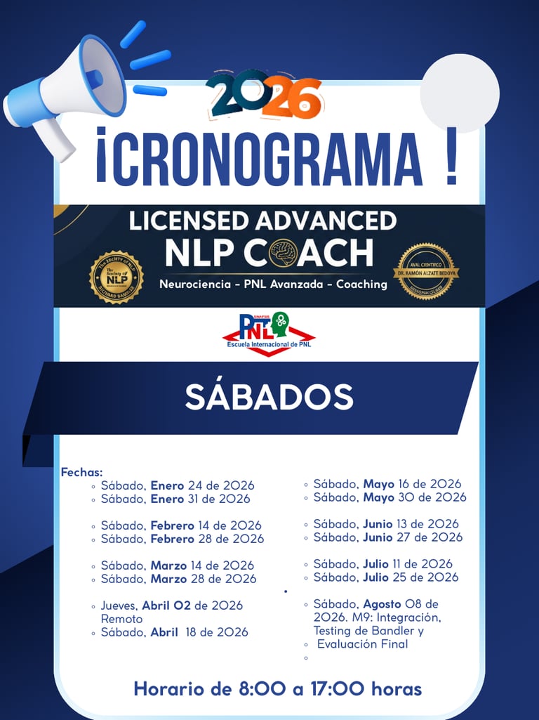 Te presentamos la Acreditación Internacional Licensed Advanced NLP Coach, un programa diseñado para transformar tu capacidad de intervención con el aval directo de The Society of NLP y la solidez de la Neurociencia.