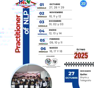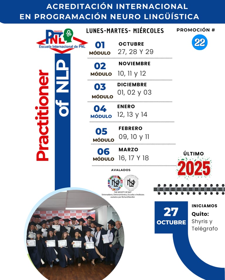 Este 27 de octubre iniciamos la Promoción N.° 22 de la Acreditación Internacional de PNL – Licensed Practitioner of NLP, avalada por Richard Bandler y The Society of NLP.