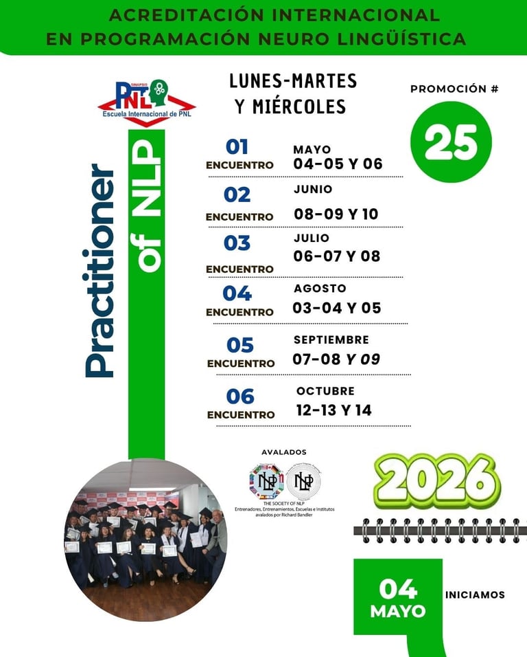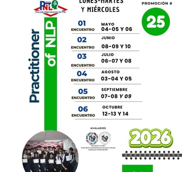 Te presentamos la Promoción N.° 25 de la Acreditación Internacional en Programación Neuro Lingüística - Licensed Practitioner of NLP, un programa diseñado para transformar tu comunicación y tu vida.