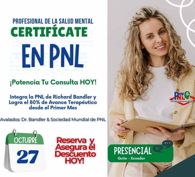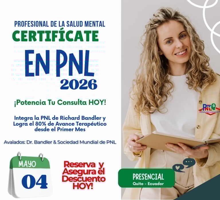 La certificación PNL Practitioner es una herramienta esencial para el profesional de la salud mental porque le permite integrar las Técnicas de PNL de Richard Bandler para Potenciar la Consulta Hoy, acortar el tiempo de intervención y lograr un 80% de avance terapéutico desde el primer mes.
