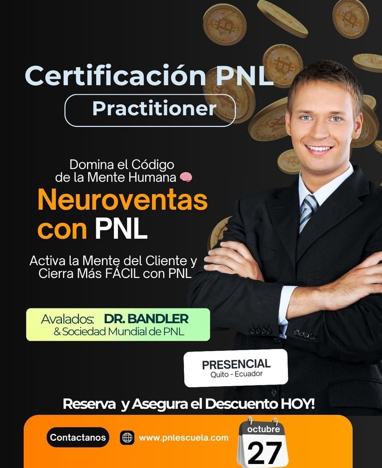 Detección de Patrones de Compra Inconscientes: La PNL utiliza las estrategias para identificar la secuencia de pasos mentales que el cliente sigue para tomar una decisión. Conocer esta "fórmula" de compra permite al vendedor guiarlo con precisión hacia el cierre más FÁCIL.