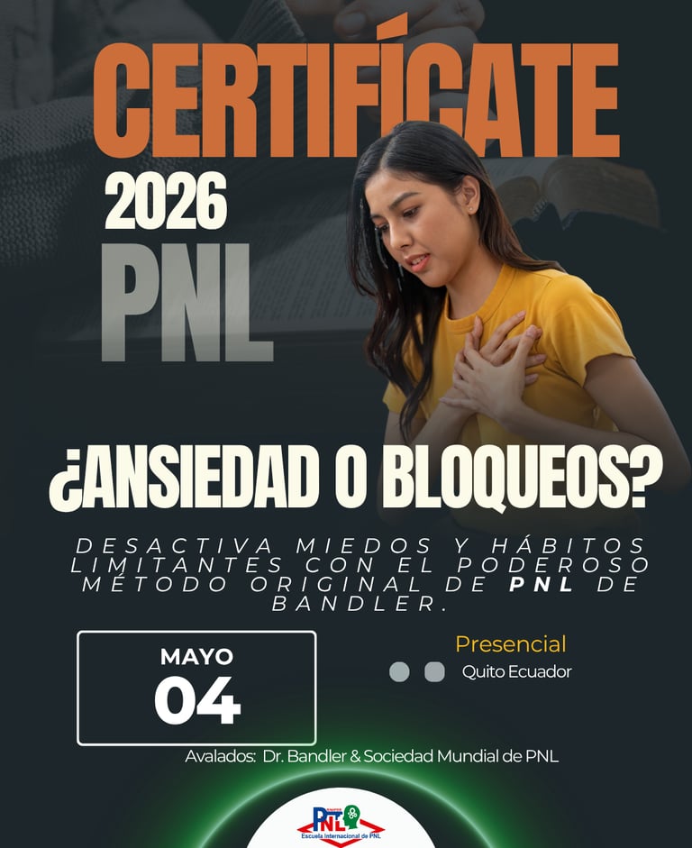 El enfoque PNL Practitioner en el manejo de la ansiedad y los bloqueos se basa en la premisa de que estos estados son solo hábitos mentales desadaptativos. El Método Original de PNL de Bandler proporciona el poder para desmantelar esos programas mentales y crear nuevos hábitos de bienestar.